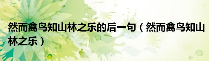 关于然而禽鸟知山林之乐的后一句,然而禽鸟知山林之乐这个很多人还不知道,今天菲菲来为大家解答以上的问题,现在让我们一起来看看吧!