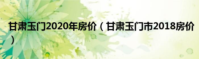 关于甘肃玉门2020年房价,甘肃玉门市2018房价这个很多人还不知道,今天菲菲来为大家解答以上的问题,现在让我们一起来看看吧!