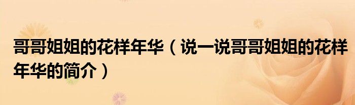 夏弥来为大家解答以下的问题,哥哥姐姐的花样年华,说一说哥哥姐姐的花样年华的简介,现在让我们一起来看看吧!