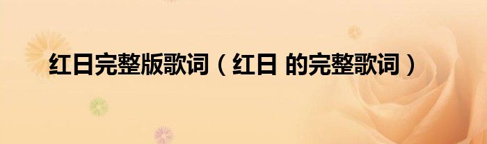 关于红日完整版歌词,红日 的完整歌词这个很多人还不知道,今天菲菲来为大家解答以上的问题,现在让我们一起来看看吧!