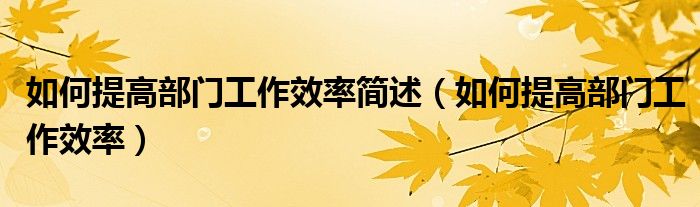 关于如何提高部门工作效率简述,如何提高部门工作效率这个很多人还不知道,今天菲菲来为大家解答以上的问题,现在让我们一起来看看吧!
