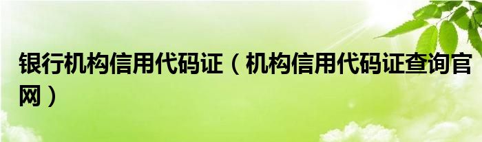 关于银行机构信用代码证,机构信用代码证查询官网这个很多人还不知道,今天菲菲来为大家解答以上的问题,现在让我们一起来看看吧!