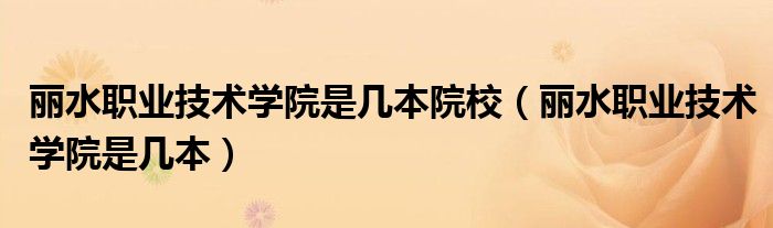 大家好,乐儿来为大家解答以下问题,丽水职业技术学院是几本院校,丽水职业技术学院是几本很多人还不知道,现在让我们一起来看看吧!