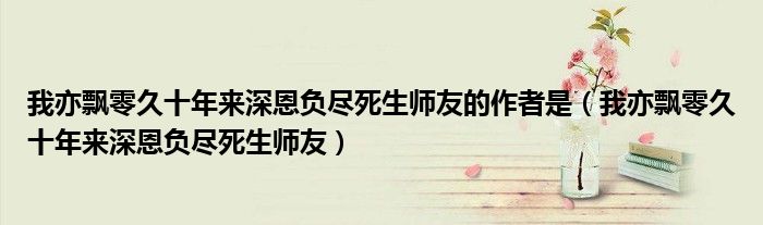 我亦飘零久十年来深恩负尽死生师友的作者是(我亦飘零久十年来深恩负尽死生师友)