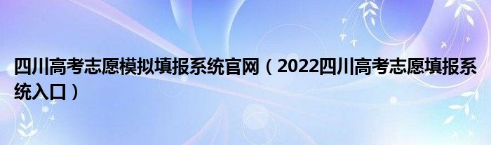 大家好,乐儿来为大家解答以下问题,四川高考志愿模拟填报系统官网,2022四川高考志愿填报系统入口很多人还不知道,现在让我们一起来看看吧!