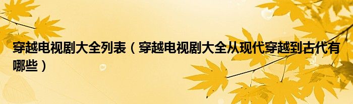 关于穿越电视剧大全列表,穿越电视剧大全从现代穿越到古代有哪些这个很多人还不知道,今天菲菲来为大家解答以上的问题,现在让我们一起来看看吧!