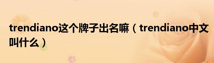 关于trendiano这个牌子出名嘛,trendiano中文叫什么这个很多人还不知道,今天菲菲来为大家解答以上的问题,现在让我们一起来看看吧!