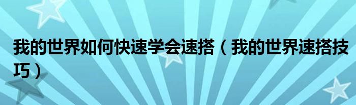 我的世界如何快速学会速搭(我的世界速搭技巧)