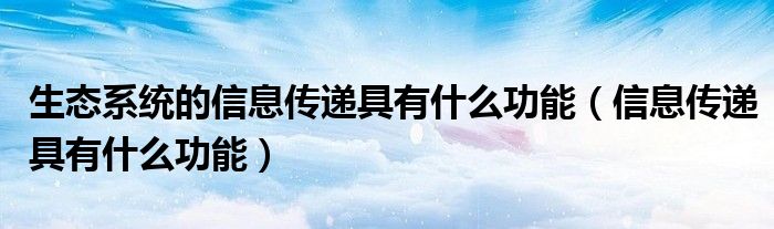 大家好,乐儿来为大家解答以下问题,生态系统的信息传递具有什么功能,信息传递具有什么功能很多人还不知道,现在让我们一起来看看吧!