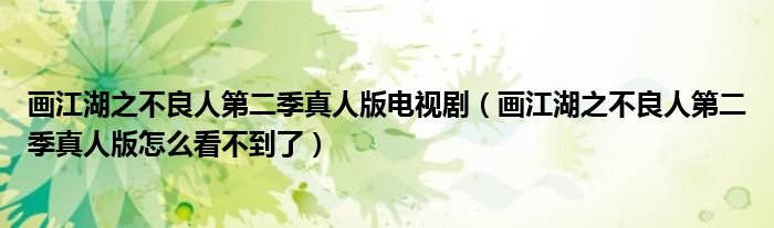 关于画江湖之不良人第二季真人版电视剧,画江湖之不良人第二季真人版怎么看不到了这个很多人还不知道,今天菲菲来为大家解答以上的问题,现在让我们一起来看看吧!