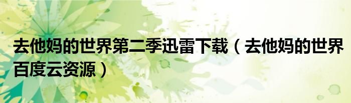 关于去他妈的世界第二季迅雷下载,去他妈的世界百度云资源这个很多人还不知道,今天菲菲来为大家解答以上的问题,现在让我们一起来看看吧!