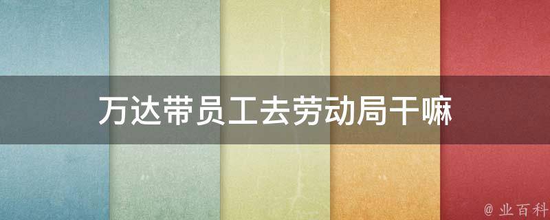 3、劳动纠纷处理:在员工与雇主之间发生劳动纠纷时,劳动局通常是提供调解和解决纠纷的机构。万达可能带员工去劳动局以解决可能发生的劳动纠纷,促进雇主和员工之间的协商和妥善解决。