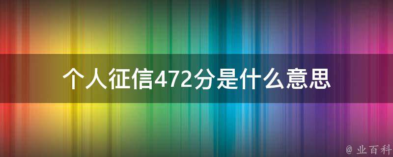 个人征信472分指的是个人在信用评分系统中的评分结果。信用评分是通过对个人信用记录的分析和评估,用以衡量个人信用状况的一个指标。具体的信用评分体系和评分范围可能因国家和具体的信用评估机构而异,因此472分的含义可能会有所不同。一般来说,较高的信用评分表示更好的信用记录和信用状况,而较低的分数可能反映出存在信用问题或违约风险。