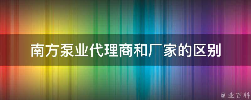 1、角色和职责:南方泵业的代理商是指被授权代理销售南方泵业生产的泵产品的公司或个人,他们在销售过程中承担推广、销售、售后服务等职责。厂家则指的是南方泵业本身,是生产和制造泵产品的公司。