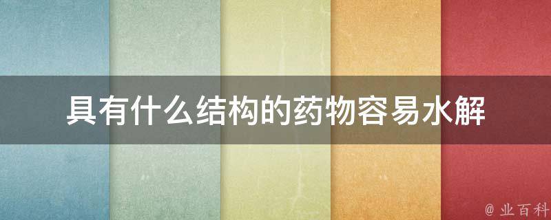 1、酯结构:药物中含有酯键的部分,如酯类药物,往往容易水解。酯键在水中容易发生水解反应。