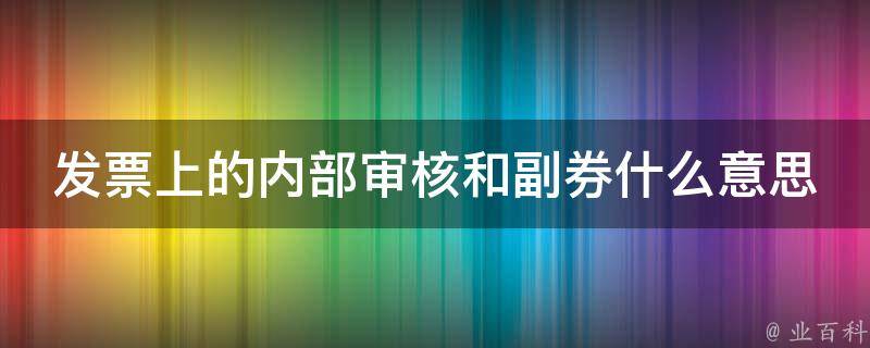 发票上的内部审核是指在发票开具过程中,由财务或会计部门进行的审核程序。它包括核对发票的准确性、合规性和完整性,以确保开具的发票符合相关法规和公司内部的财务政策。副券是指发票上的附属凭证,也称为明细清单或附件。它通常包括了发票所列商品或服务的详细信息,如数量、单价、金额等。副券的目的是提供更详细和全面的信息,方便受票方核对和了解发票所列项目的具体内容和相关细节。