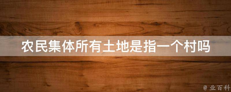 农民集体所有土地不是指一个村,农民集体所有土地通常指的是一定范围内农村居民集体所拥有的土地,而不仅限于一个村庄。在中国,农村土地的所有权属于国家,而具体的使用权则归属于农民集体经济组织。农民集体所有土地是指农村居民集体经济组织(例如农村集体经济组织、农民专业合作社等)拥有并管理的土地。这些集体土地的使用权由农民集体经济组织代表农民管理、分配或出租等。