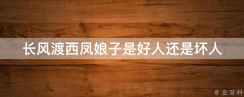 最佳答案长风渡西凤娘子是坏人。西凤娘子是一个复杂的人物,她是洛子商的手下,一直在为洛子商做事。西凤娘子表面上是兰笑坊老板娘,实则是洛子商的眼线,小说中她还受洛子商的指示勾引范玉。但是西凤娘子也不完全是心肠狠毒的人,她对洛子商的忠心蒙蔽了她对善与恶的判断。