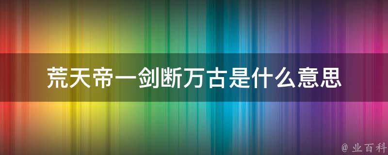 荒天帝一剑断万古的意思是荒天帝石昊独断万古,斩断了万古岁月的大因果,截断了整整一个纪元的岁月,借此终结乱古纪元,开启新的纪元。同时在上苍之上,荒天帝和上苍之上的敌人展开大战,准仙帝级别的强者都不是他的对手,最后荒天帝一剑斩断时间长河,断开上苍之下和上苍之上的联系,留下后手后独自前往另一个世界征战。因此,独断万古荒天帝的称号是对他在小说中表现出的强大实力和气势的概括,也是众多书迷对他的喜爱和称赞。