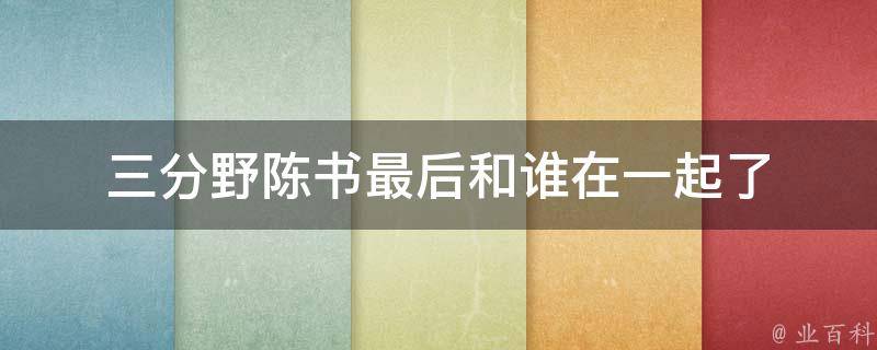 三分野陈书最后和高冷在一起了。剧里面两人一开始就是男女朋友关系,而且是感情很甜蜜、很稳定的那种。高冷管陈书叫媳妇,而陈书表面上端庄又有事业心,但私下跟高冷在一起的时候却很松弛、很有趣。陈书是维林销售部的,而高冷是技术部的,两人之间属于办公室恋情。