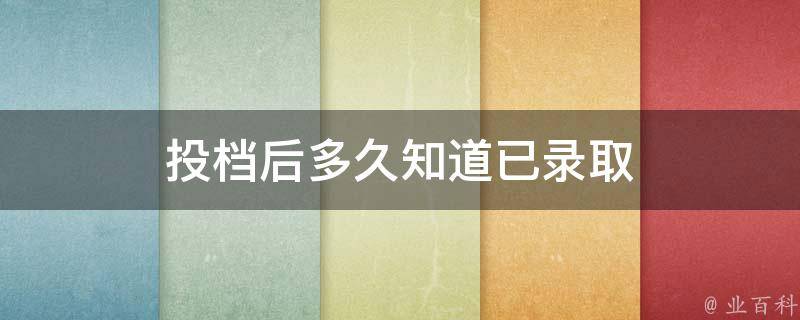 最佳答案投档后2-3天知道是否被录取。已投档状态其实就是考生档案已经投递到了院校,这个时候就要等待院校下载档案并审核是否符合报考专业的标准,这个过程一般不会持续很长。而且本身各批次的录取时间也不长,所以一般两到三天已投档状态的考生就能看到自己的录取结果,在这途中可能状态还会变更,比如变成...