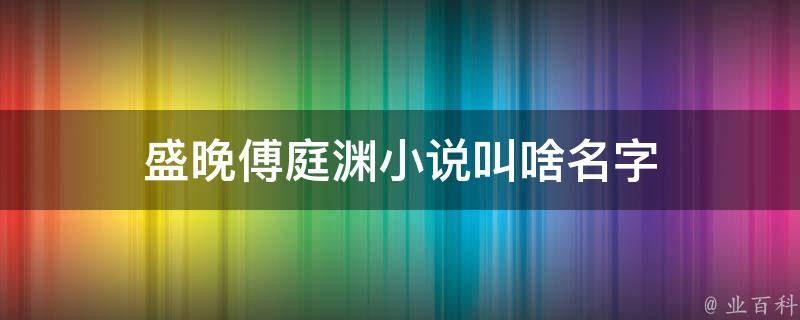 盛晚傅庭渊小说叫啥名字