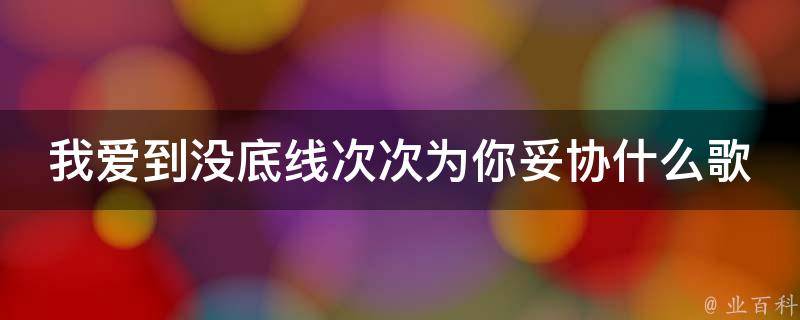 我爱到没底线次次为你妥协是歌曲《底线》。这首歌曲由任夏演唱并作词,曲多美作曲,歌词节选:我爱到没底线,次次为你妥协,到最后我却弄丢了尊严;从聊不完的天,到冷漠的敷衍,你给的爱怎能说变就变。