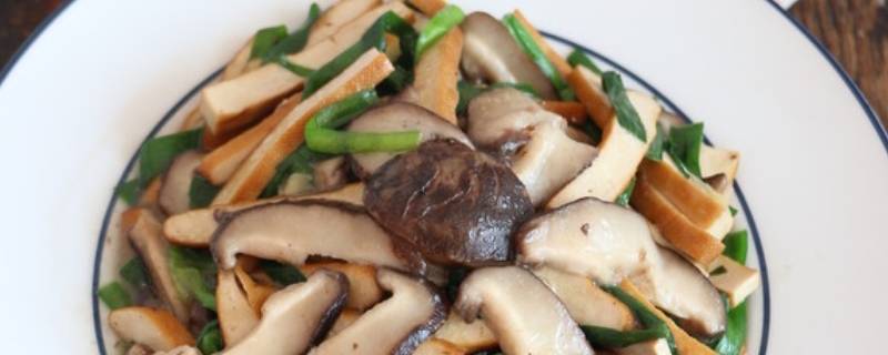 中小火煎成两面金黄,捞出。刚才炸豆干的油,留一点在锅里,热油后放入切好的香菇中火爆香一下。