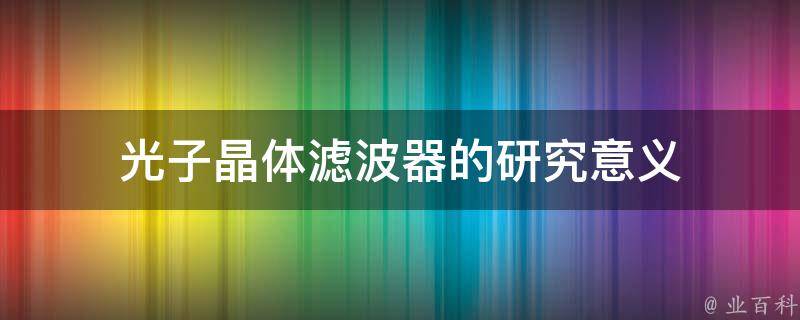 3、光子晶体光学:光子晶体滤波器的研究对于光子晶体光学领域的发展也具有重要推动作用。通过对光子晶体的设计、制备和调控,可以实现更多复杂光学器件和功能材料,为光子晶体光学的研究和应用带来新的机遇和挑战。