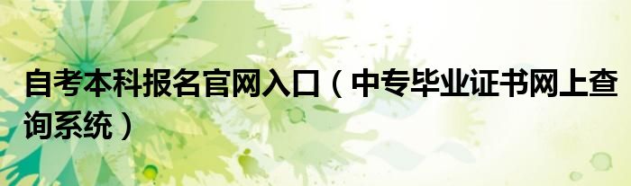 关于自考本科报名官网入口,中专毕业证书网上查询系统这个很多人还不知道,今天菲菲来为大家解答以上的问题,现在让我们一起来看看吧!