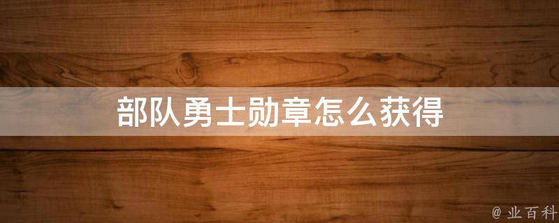 部队勇士勋章怎么获得