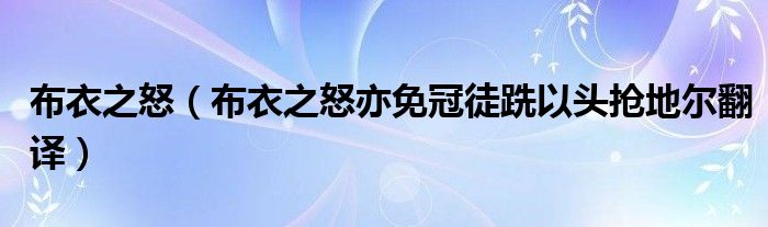 关于布衣之怒,布衣之怒亦免冠徒跣以头抢地尔翻译这个很多人还不知道,今天菲菲来为大家解答以上的问题,现在让我们一起来看看吧!