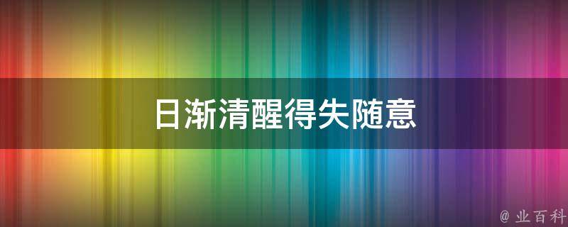 日渐清醒得失随意是指一个人逐渐变得清醒和通透,不再为得失而烦恼。它表示一个人在成长和发展过程中逐渐学会了放下和控制自己的情绪,能够理性地看待自己的得失,不再被情绪所左右。这种状态通常是由于一个人经历了许多事情,逐渐明白了生活中的真相和本质,从而能够更加从容地面对生活中的挑战和变化。