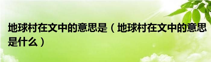 大家好,小夏来为大家讲解下。地球村在文中的意思是,地球村在文中的意思是什么很多人还不知道,现在让我们一起来看看吧!