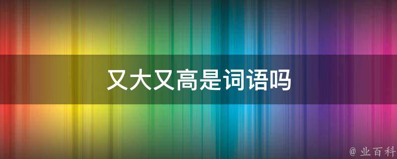 又大又高是词语。又高又大是ABAC式词语,是一个非常常见的描述词语,是用来形容物体尺寸大小的,然而在语言规范和修辞技巧方面,使用又大又高并不总是正确的,使用又大又高这个词语有时候可能会显得过于平庸和缺乏创意。类似的词语有:又说又笑、又大又圆、又长又细、又白又胖。