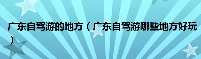 关于广东自驾游的地方,广东自驾游哪些地方好玩这个很多人还不知道,今天菲菲来为大家解答以上的问题,现在让我们一起来看看吧!