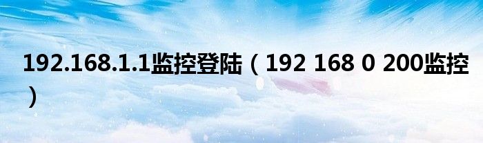 关于192.168.1.1监控登陆,192 168 0 200监控这个很多人还不知道,今天菲菲来为大家解答以上的问题,现在让我们一起来看看吧!
