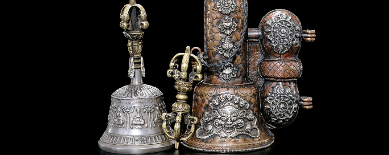 手柄有雕像的铃铛叫金刚铃。金刚铃是藏、蒙古、纳西、汉等族摇击体鸣乐器,历史久远,原为佛教密宗法器,由印度传入我国。金刚铃由铃身、铃柄、铃舌三部分构成。铃身外形似钟,响铜铸成,圆口,边缘齐平,顶部和周身均饰有精美花纹图案。