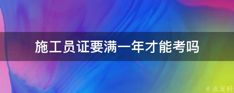 施工员证满一年不能考。报考施工员证的条件:初级施工员需具备本专业或相关专业中专以上学历,或从事本职业工作2年以上;中级施工员需具备本专业或相关专业大专以上学历,或连续从事本职业工作4年以上,或取得本职业初级证书,从事本职业工作2年以上;高级施工员需具备本专业本科以上学历,并从事本职业工作2年以上,或本专业大专以上学历,并从事本职业工作4年以上,或取得本职业中级证书,从事本职业工作3年以上。