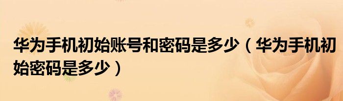 华为手机初始账号和密码是多少(华为手机初始密码是多少)