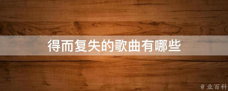 得而复失的歌曲有《失而复得》《得而复失》《失而复得的爱》等,表达了爱情失而复得后的喜悦。歌曲是音乐艺术中规模最小、篇幅最短、形成最早和影响最大的音乐艺术形式之一。从一开始就伴随着人类文明的起源,共同度过了漫长而艰辛的悠悠岁月。