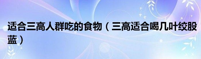 大家好,我是小科,我来为大家解答以上问题。适合三高人群吃的食物,三高适合喝几叶绞股蓝很多人还不知道,现在让我们一起来看看吧!