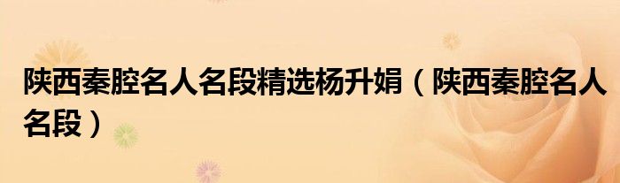 陕西秦腔名人名段精选杨升娟(陕西秦腔名人名段)