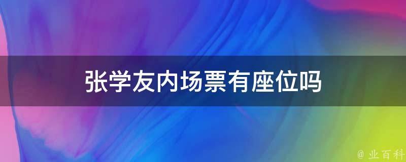 张学友内场票有座位。在演唱会现场,内场票的座位通常距离舞台较近,可以更清晰地看到歌手和舞台表演,同时也更有可能与歌手进行互动。一般来说,前排座位更优,因为它们能够更清晰地看到舞台表演,且与歌手互动的可能性更高。