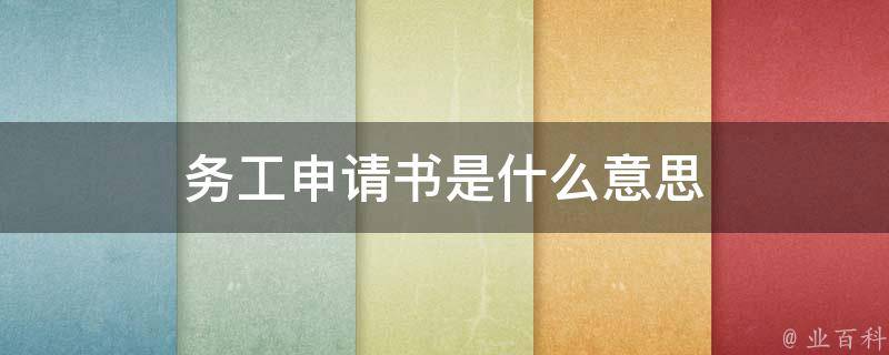 务工申请书是指从事务工的人向单位或雇主提出申请工作并表明自己务工态度的文书。务工申请书通常包括申请人姓名、性别、年龄、文化程度、务工意向、申请理由等,需要写明自己的特长、优势和从事工作的情况,并对工作待遇和条件提出合理的要求,同时要表明自己的态度和决心,表达对工作的热爱和追求。