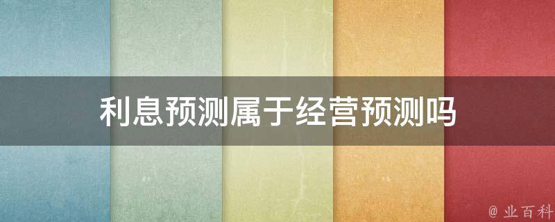 利息预测属于经营预测的一部分。经营预测的内容主要包括销售预测、成本预测、利润预测和资金预测等方面,而利息预测是资金预测的一部分,因此属于经营预测。经营预测是指根据企业现有的经济条件和掌握的历史资料以及客观事物的内在联系,对企业生产经营活动的未来发展趋势及其状况所进行的预计和推算。