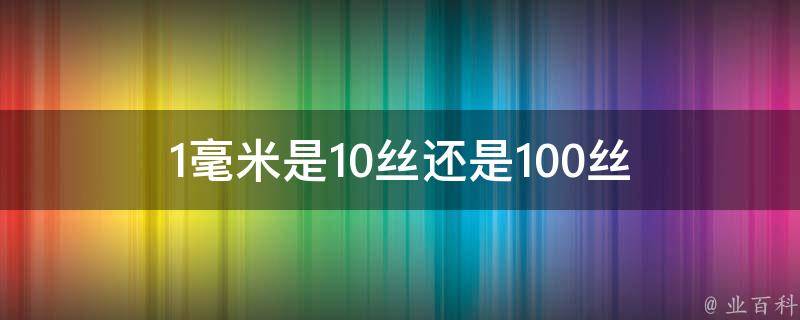 1毫米是100丝。这是工业企业常用的长度计量单位,丝是机械计量单位。1毫米=100丝,1丝等于10缪,实际上所谓的缪指的是米。微米是长度单位,1微米的长度是1米的一百万分之一,是1毫米的一千分之一。通常用来计量微小物体的长度。