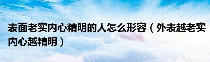 大家好,我是小科,我来为大家解答以上问题。表面老实内心精明的人怎么形容,外表越老实内心越精明很多人还不知道,现在让我们一起来看看吧!