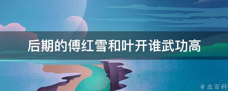 最佳答案后期的傅红雪和叶开武功不分高下,都很厉害。傅红雪所习刀法来自神刀无敌白天羽的神刀秘笈,并会《天地交征阴阳大悲赋》其中一式。傅红雪有夜眼,过目不忘,会解毒,精通毒杀、暗算之法,虽右腿跛足残疾,但施展轻功与常人无异,同時患有癫痫症。叶开是神刀堂堂主神刀无敌白天羽和魔教大公主花白凤...