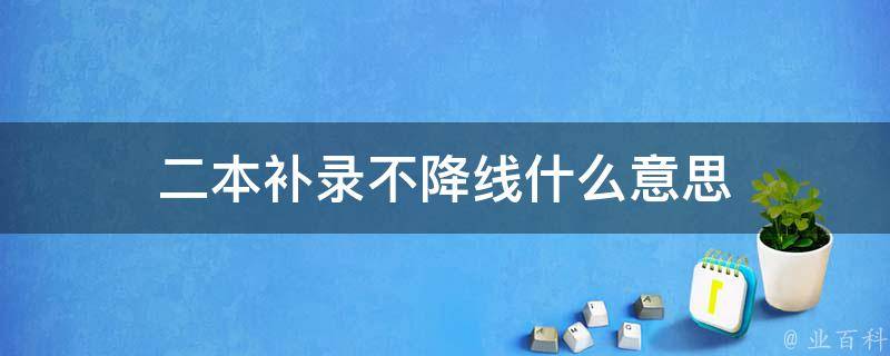 二本补录不降线意思是开始提档的学生录取的人数不够,然后再补录,就是征集志愿,不降分就是还是按原来的分数录取。补录二本这一政策的出台旨在给学生更多地选择机会,使他们更好地享有教育资源,改变糊涂填报的现象。补录二本是一项为了满足高考志愿的个性化和多元化需求而特别推出的政策。补录期一般在12月初左右。